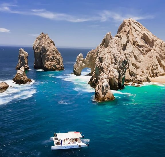 Потрясающие виды на такие знаковые достопримечательности, как Арка Кабо-Сан-Лукас и Пляж влюбленных