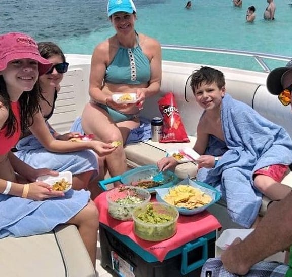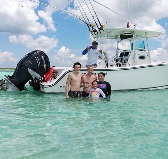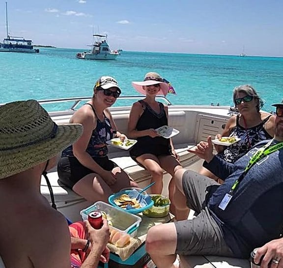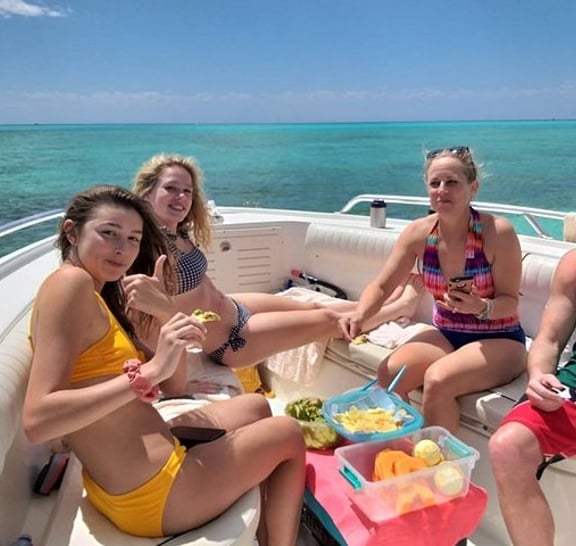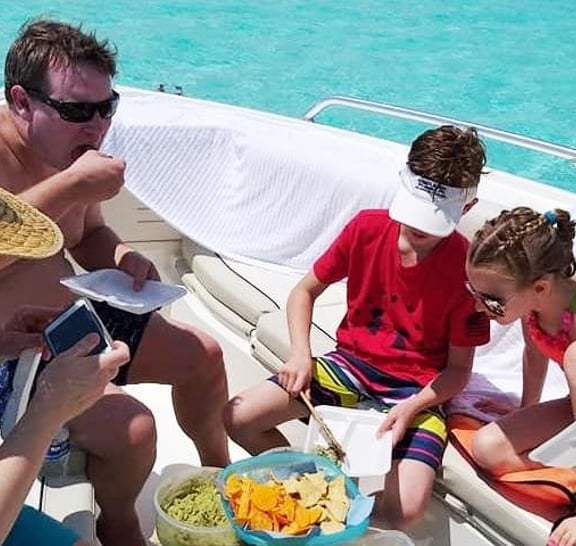 • Award-winning crew and nice boat! • Private charter, personalize your trip! • Guided snorkeling at a secluded reef with all equipment included! • Visit the famous "El Cielo" sandbar at Punta Sur Cozumel! • Open bar: Bottled water, coca cola, coca cola light, sprite and juices. Alcoholic drinks include Tecate Light and Corona beers, Captain Morgan Rum, Tequila, and mixed drinks such as Cuba Libre, Margarita, etc.! • Fresh lunch: Guacamole with chips, fresh fruit, fish ceviche, grilled fish and shrimp, fish and shrimp quesadillas and tacos, Mexican salsas! • All licenses and permits are up to date, with US safety standards! • Full marine toilet on board!
